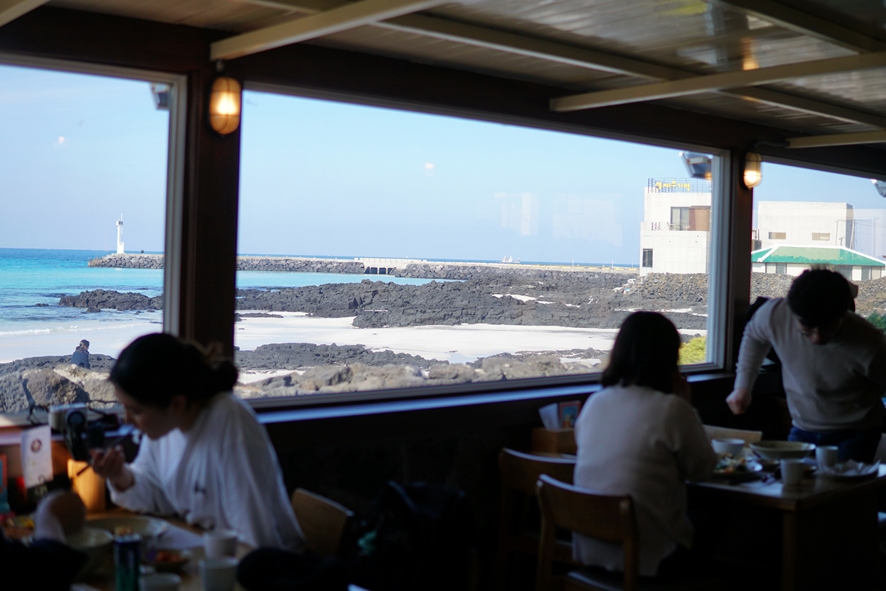 가게 내부로 들어서면 협재 해수욕장이 그대로 보이는 뷰가 정말 놀라울 정도인데요. 운이 좋으면 창가 쪽 자리를 앉을 수 있으니 이곳에 방문했다면 한번 도전해보시는 것도 좋을 것 같습니다. 에메랄드빛 바다 보면서 가락국수 먹는 모습 생각만 해도 힐링 되지 않나요?