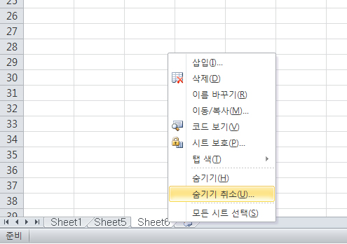 그냥 아무시트에 가서 마우스 오른쪽 버튼을 눌러주세요. 숨기기 기능을 사용했다면 숨기기 취소라는 메뉴가 보이실겁니다. 이 메뉴를 클릭하게 되면 숨기기 취소라는 창이 뜨게 되는데, 이 때 여기서 내가 보고 싶은 워크시트만 선택해서 확인 버튼을 눌러주시면 됩니다. 얼마전에 이런 문제때문에 서식을 수정 못하고 고민하시던 분이 계셨는데 혹시라도 또 고민하고 계실 다른분께도 도움이 될까 포스팅으로 적어봅니다 엑셀 시트 숨기기 취소하는 방법까지|작성자