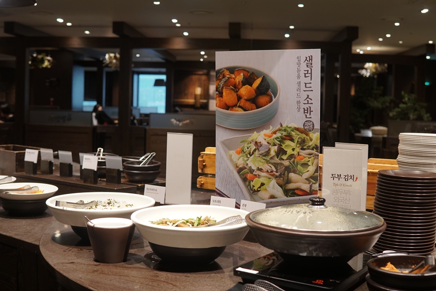 샐러드소반쪽에는 입맛을 돋을 수 있는 두부김치, 도토리묵 등 자연 그대로의 맛을 즐길 수 있는 요리들이 많았습니다. 두 부부는 이 코너를 좋아하지만, 두 남매는 쳐다도 안 보는 코너로 한식 뷔페인 자연별곡에 잘 어울리는 음식들로 구성되어 있습니다.