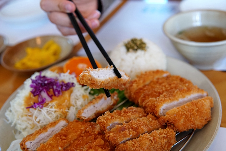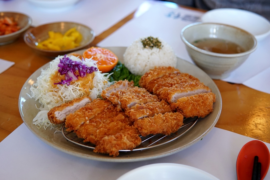 두툼한 돈까스 한 점 집어서 소스에 콕 찍어 먹으면 세상 맛있죠. 그리고 밥, 샐러드와 함께 먹으면 든든한 한 끼가 완성되며, 여행에 쓸 체력을 제대로 보충할 수 있습니다.