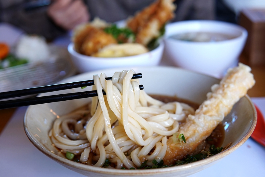 튀긴 달걀은 반숙이라 반숙을 싫어하는 분들은 면 위에서 으깨지 말고 별도 먹는 게 좋을 것 같고, 시원한 우동면발과 튀김, 국물과 함께 드셔보시면 냉우동의 매력에 제대로 빠지게 될 것 같네요.