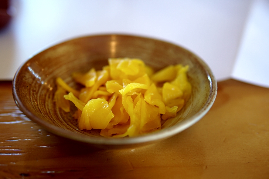 돈까스와 우동을 주력으로 파는 집이라 밑반찬은 단무지와 김치가 제공됩니다. 두 가지 반찬 모두먹기 좋은 크기로 썰어놓은 것이 특징이네요.